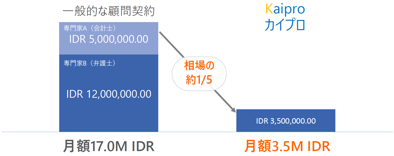 通常の顧問契約は専門家2名で月17.0M IDRほど