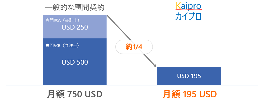 通常の顧問契約は専門家2名で月750USDほど
